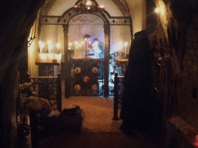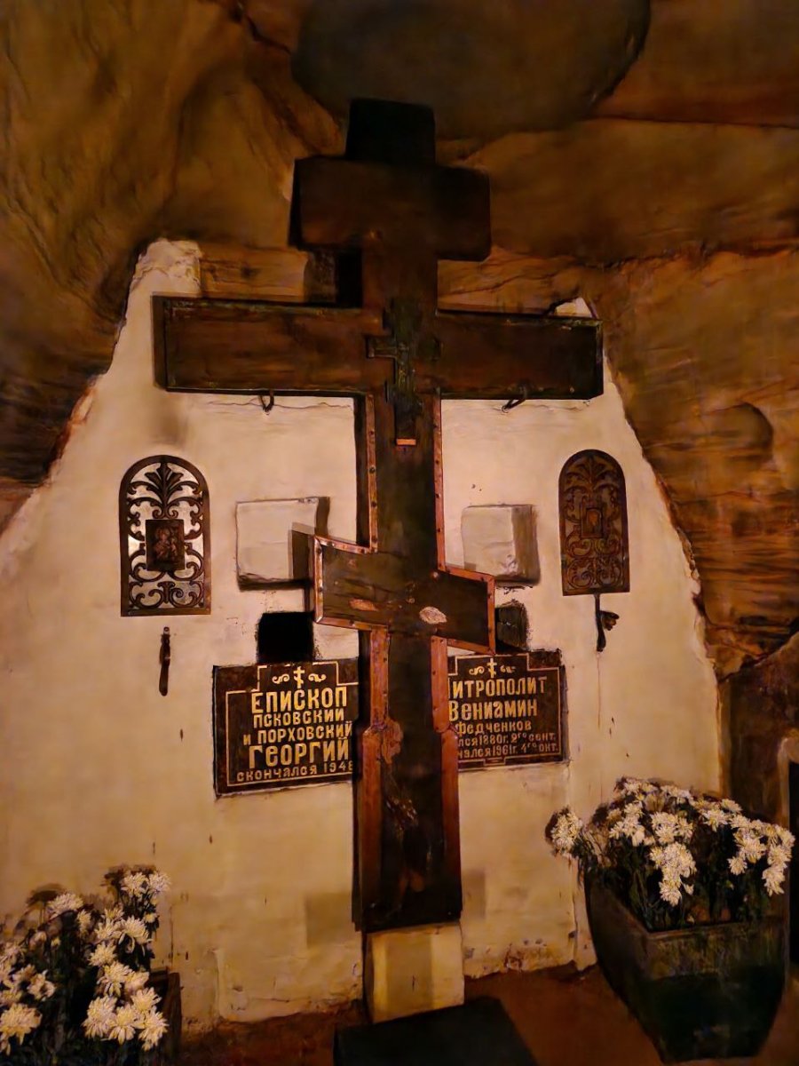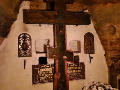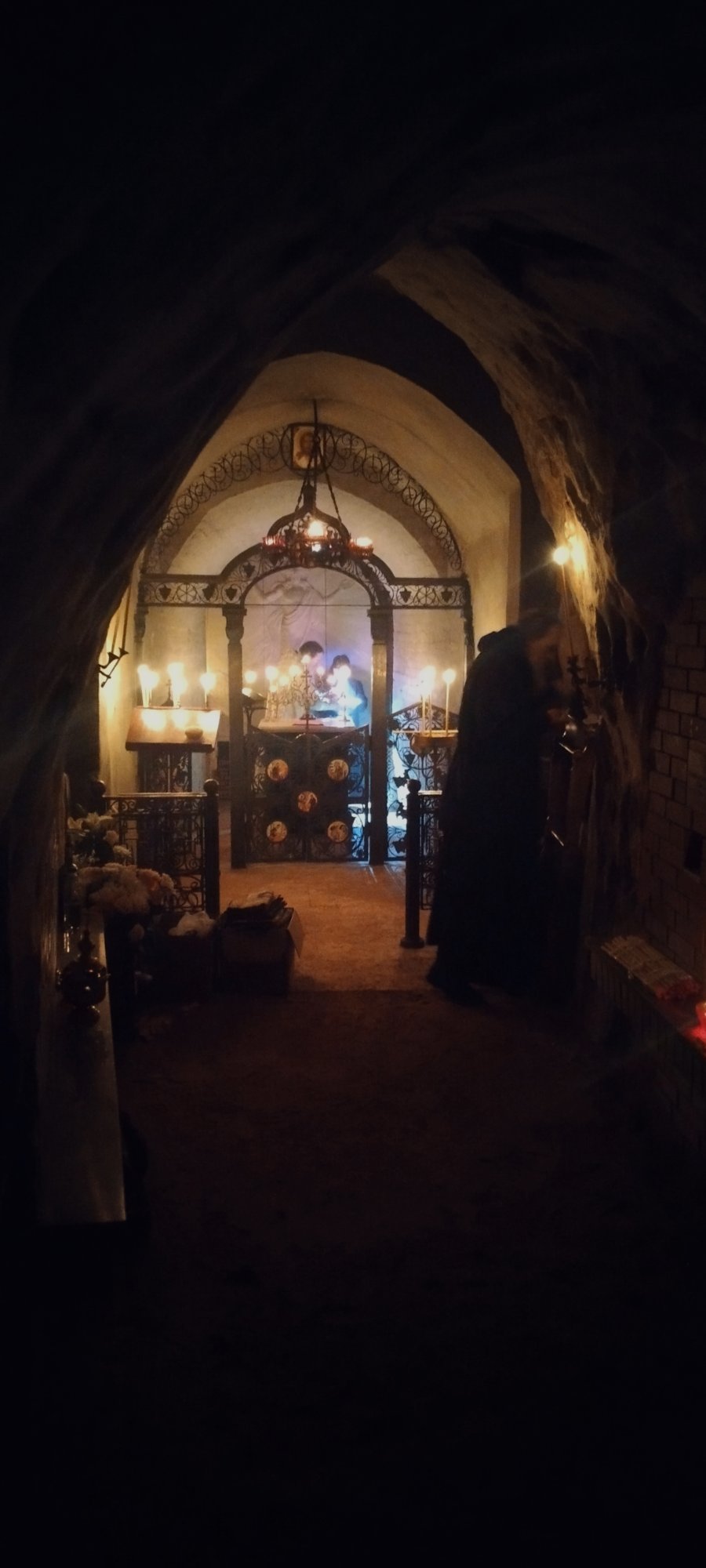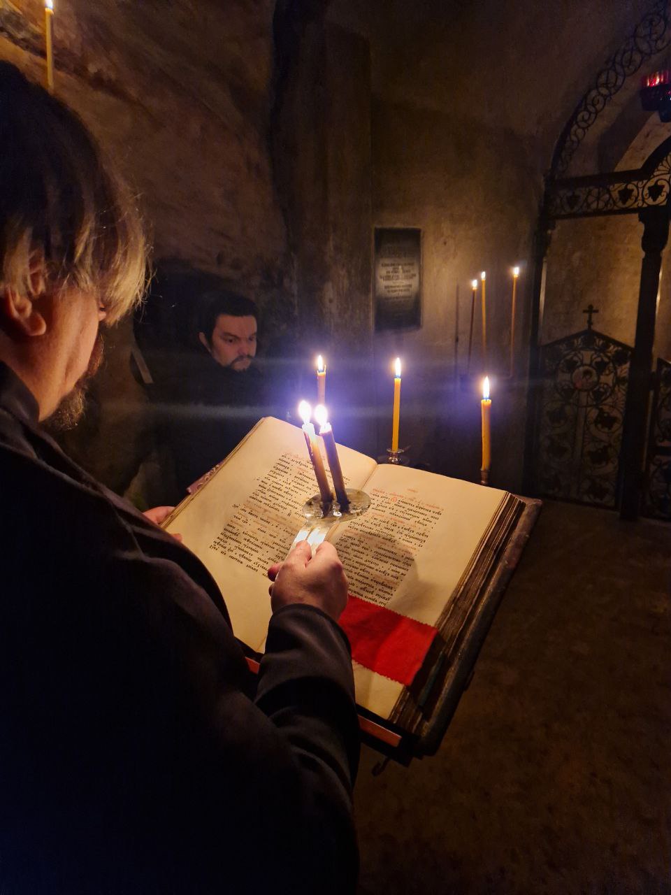 После совершения службы группу паломников провели по другим частям пещеры, продемонстрировали местные святыни и места погребения знаменитых насельников святой обители.