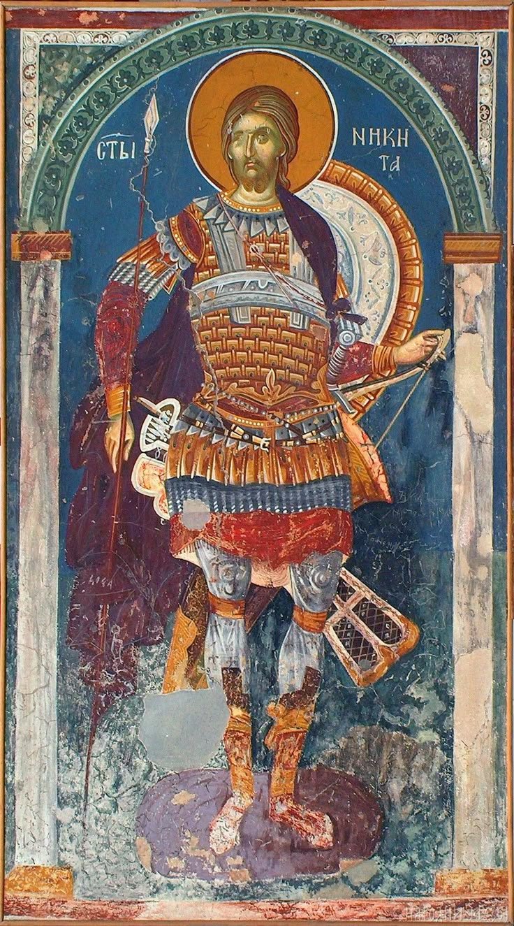 Вмч. Никита, готф по происхождению, принял крещение и стал ревностным проповедником христианства среди соплеменников. После возвращения к власти язычников св. Никита был подвергнут многим пыткам и сожжён в 372 году. Его тело, чудесно уцелевшее в огне, было тайно погребено христианами, а позднее перенесено в Константинополь.
