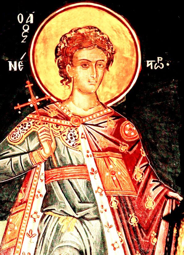 Мученик Нестор, ученик св. Димитрия Солунского, во время гладиаторских игр вступил в бой с любимым силачом императора германцем Лием, который убивал многих христиан. Перед поединком Нестор испросил благословения и молитв у своего наставника в темнице. Св. Димитрий осенил его крестным знамением и предрёк: «Лия победишь и сам постраждешь за Христа». Укреплённый Божией силой, Нестор победил Лия. Разгневанный император, узнав, что победитель ‒ христианин, приказал казнить св. Нестора через усечение мечом.